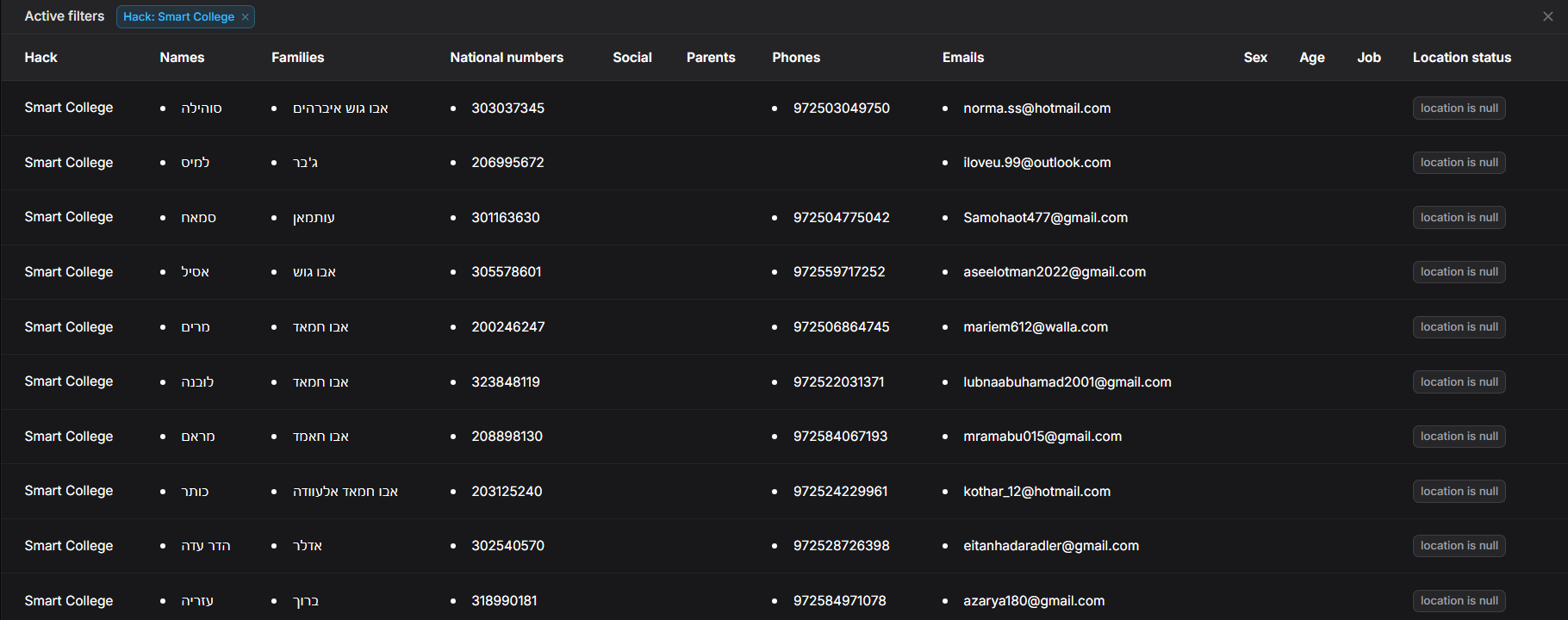 Which includes names and families, phones and emails, and the national numbers. Just click here to see the data.